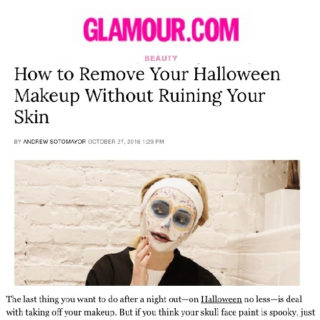 Glamour.com: How to Remove Your Halloween Makeup Without Ruining Your Skin